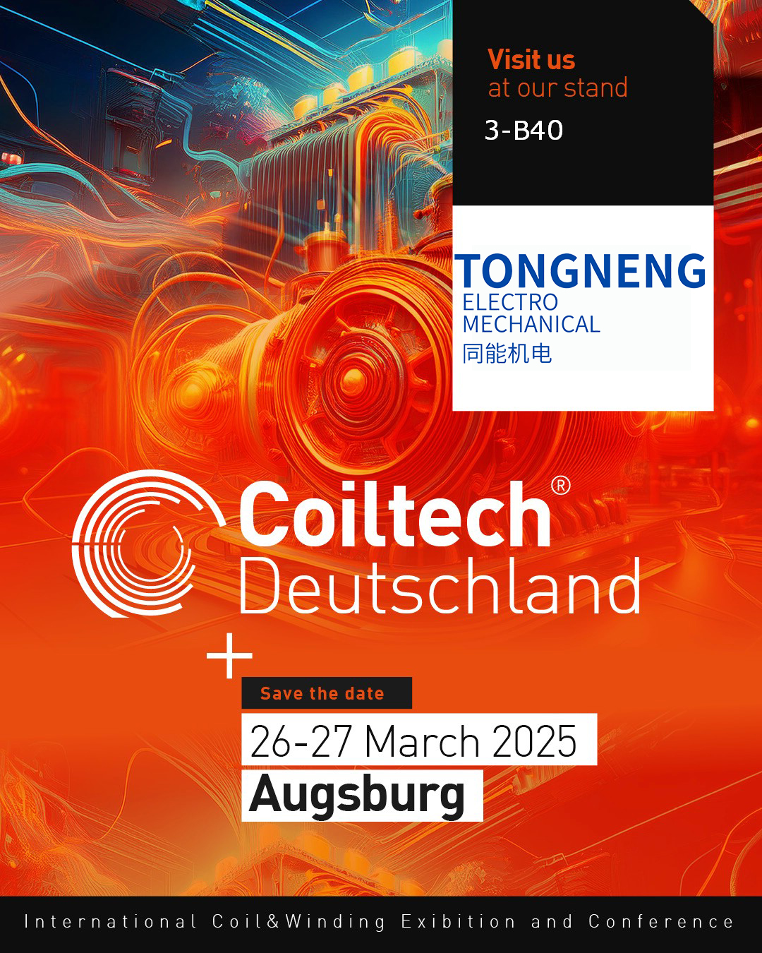 我們很榮幸通知您,同能機電將參加2025年3月26日到2025年3月27日的線圈繞線展會。